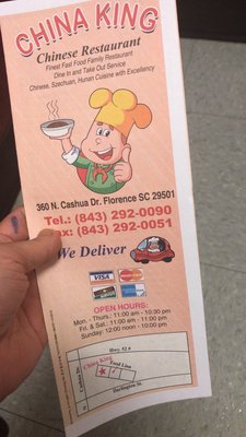 Was staying at the hampton inn florence and asked if they had any menus for delivery to the hotel. 2300 Church St CHINA TOWN 28 NEW MARKEL SI. We go at least twice a month now.