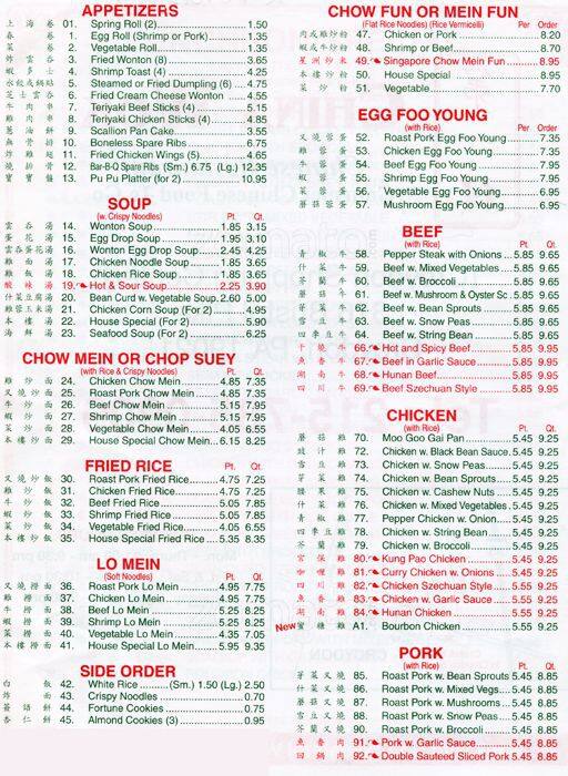 Chinese Takeout Menu China Wok Chinese Food Take Out Take Out Menu