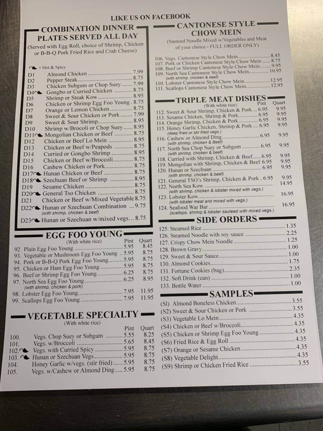 Menu At North Sea Chinese Restaurant Burton