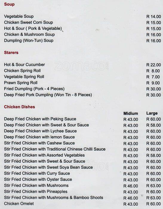 The Chinese Wok Menu Menu For The Chinese Wok Wilropark Roodepoort