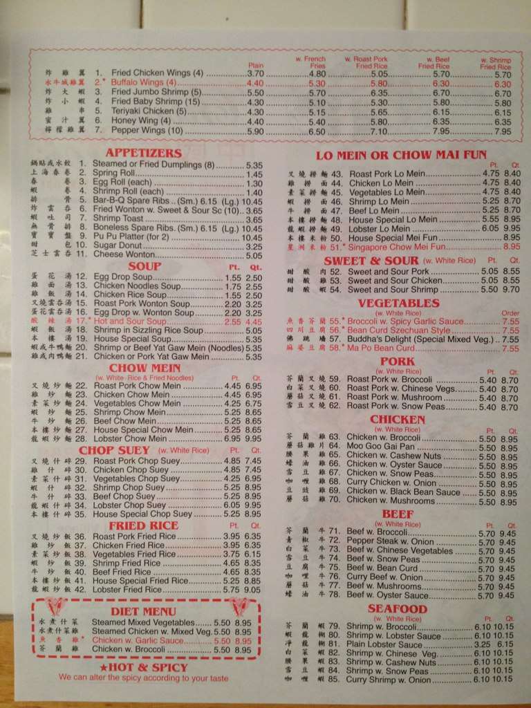 Chinese Takeout Menu China Wok Chinese Food Take Out Take Out Menu