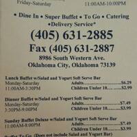 8986 S Western Ave Oklahoma City OK 73139. Go for the buffet option for a wide selection of traditional Chinese favorites including egg rolls hot and sour soup vegetable chow mein crab rangoons shrimp fried rice sauteed green beans Mongolian beef sesame chicken and more. Is this your business.