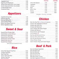 Please contact the restaurant directly. Take Out Fast Food. Chinese 302 424-2222.