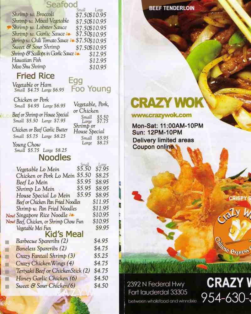 Menu For Crazy Wok 2392 N Federal Hwy Br Fort Lauderdale Fl 33305