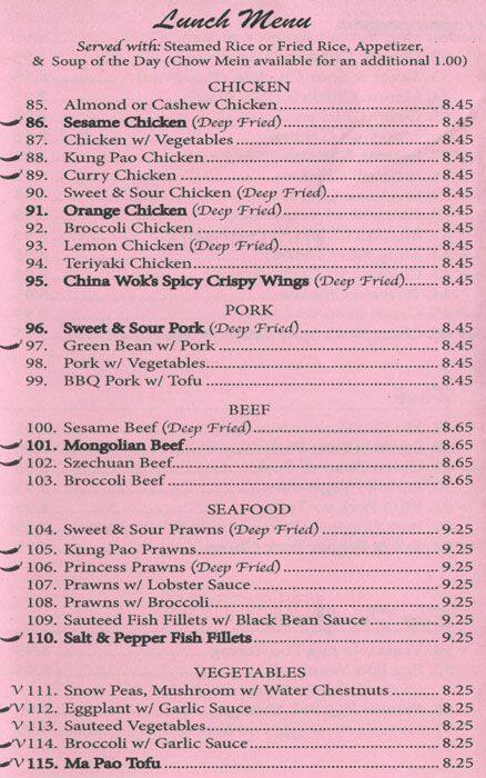 China Wok Menu Menu For China Wok Rohnert Park Rohnert Park