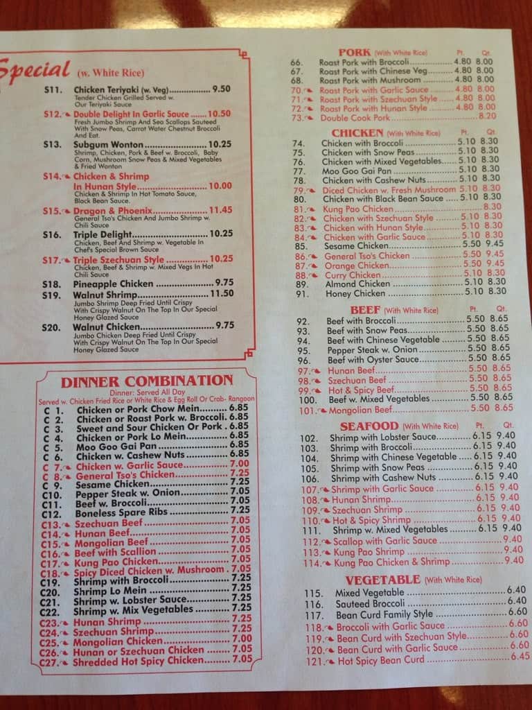 Includes the menu user reviews 40 photos and 799 dishes from China. Jumbo shrimpchicken roast pork with waterchestnutscelerypeppersnow peas in hot spicy garlic sauce. Sliced chickenbroccoliwaterchestnuts celerypeppersnow peas in hot spicy garlic sauce.